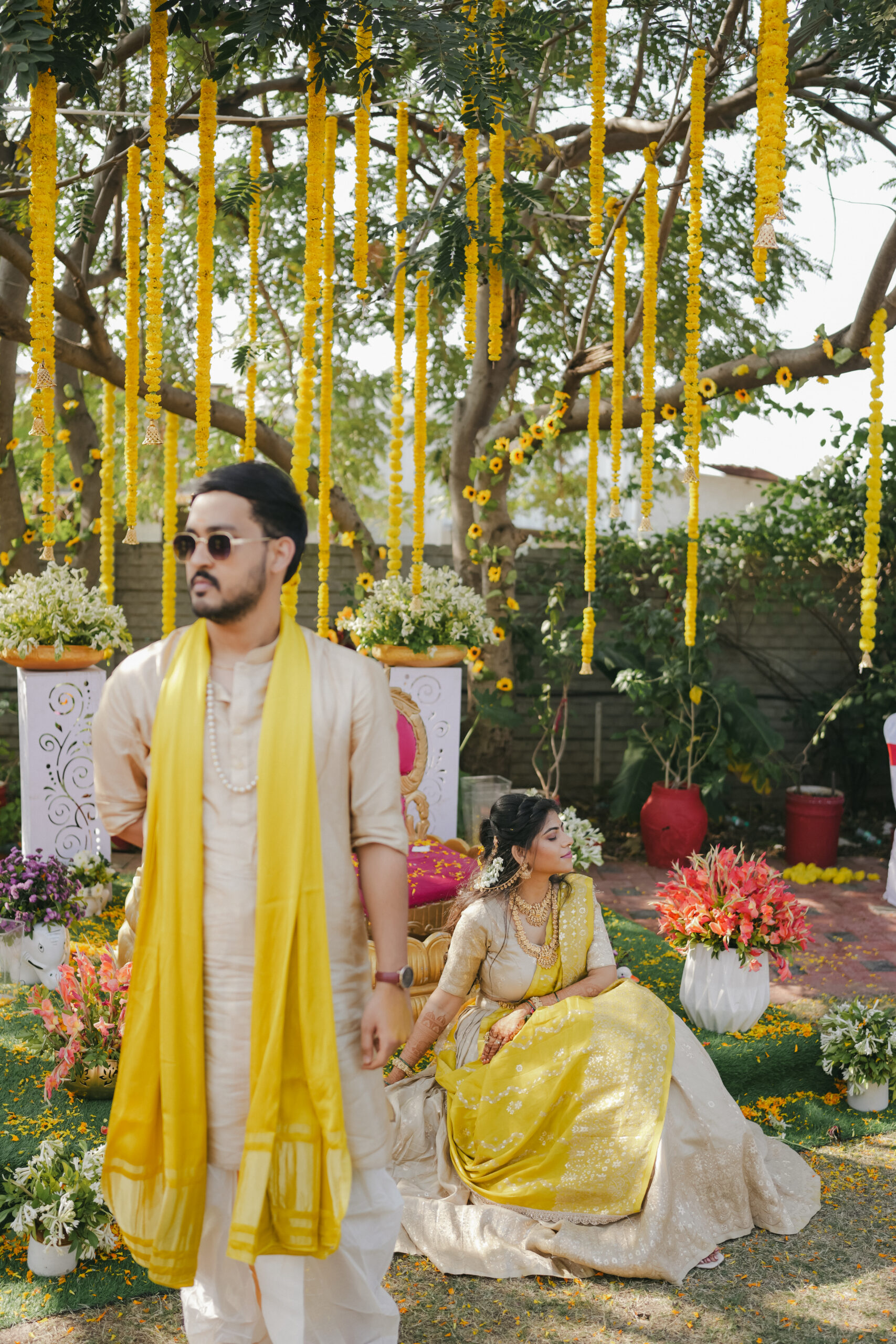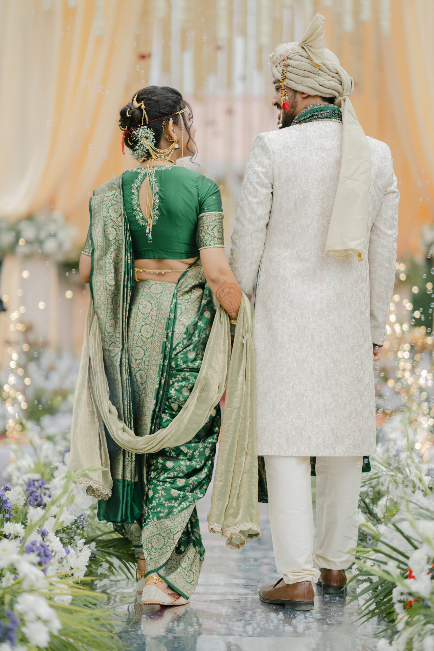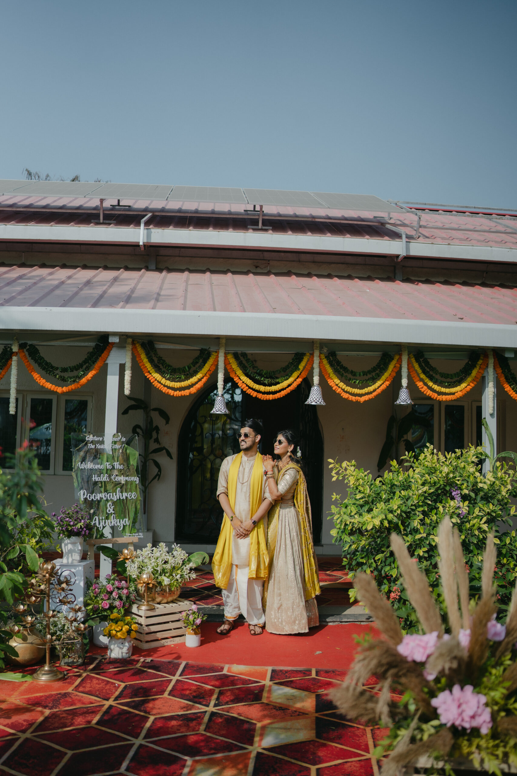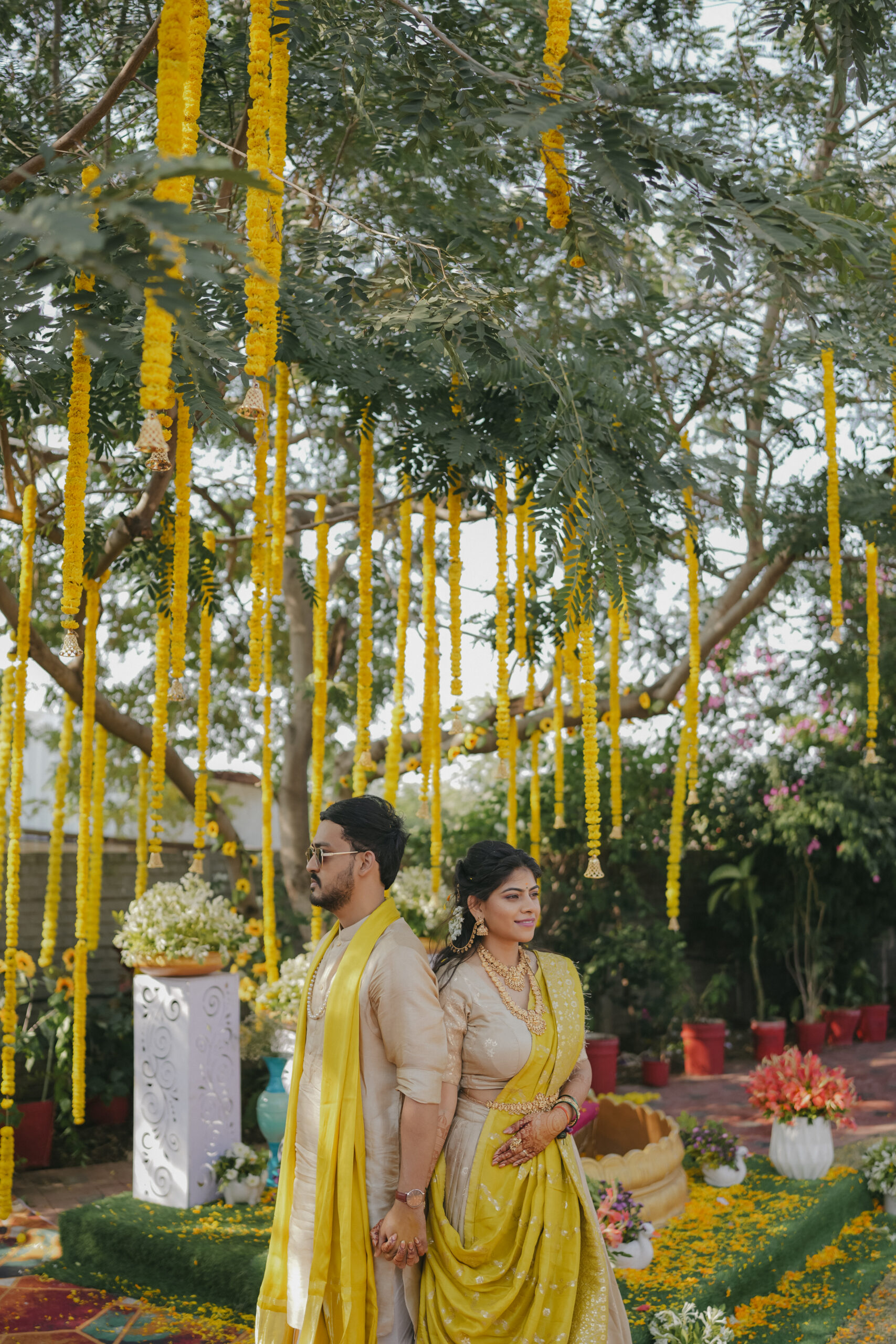 Amidst a dreamy garden adorned with blooming flowers and lush green plants, Poorvashree and Ajinkya celebrated their union. Surrounded by nature’s beauty and love’s blessings, their wedding unfolded in timeless elegance, a perfect blend of romance and serenity.